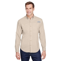 Columbia PFG logo patch on rod holder on left chest